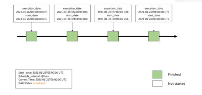 위 예시와 날짜가 조금 다르지만 (catchup이 True일 경우) 그림으로 설명한다면 아래와 같다.