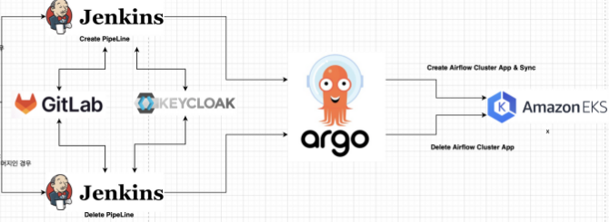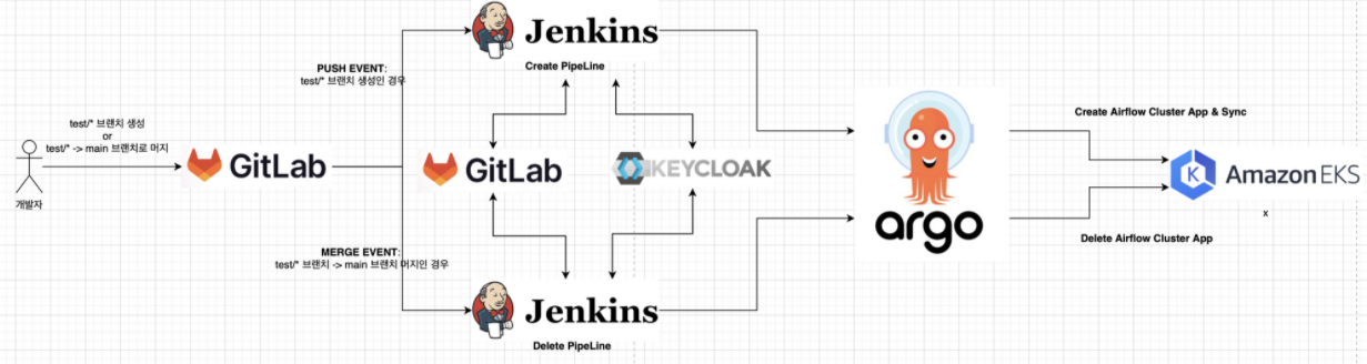 - 첫번째 단계의 gitlab은 Airflow Dag 파일들을 관리하는 gitlab repo 이고,